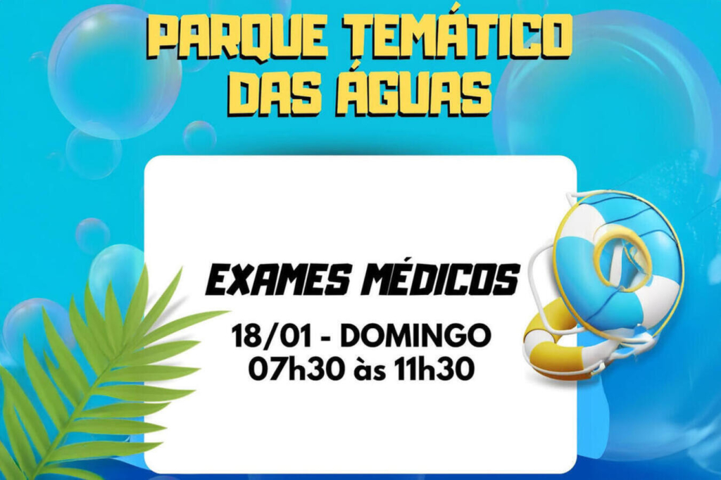Um mutirão de exames médicos gratuitos será realizado neste domingo (18) no Parque Temático das Águas, em Toledo. A ação tem como objetivo ampliar o acesso da população ao exame obrigatório para utilização da estrutura do parque durante a temporada de verão.