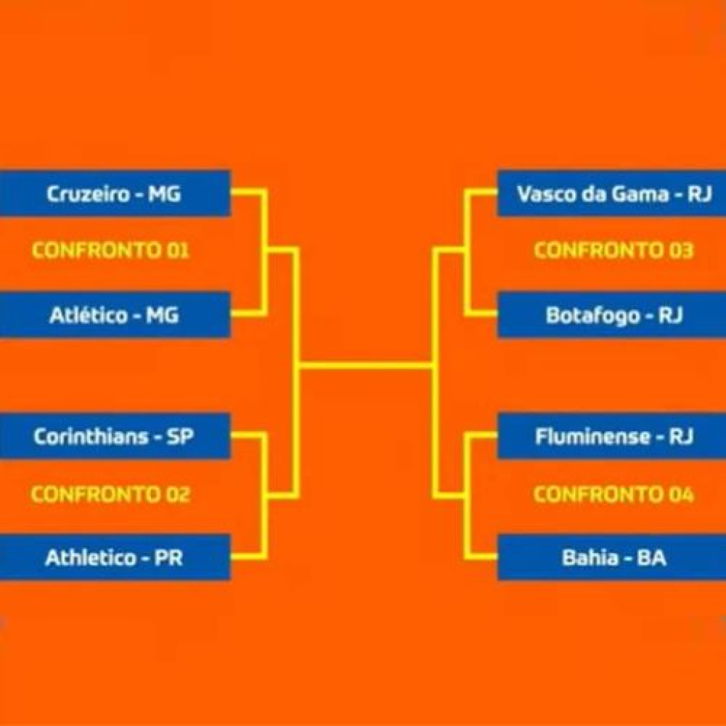 Serão dois clássicos nas quartas de final: Cruzeiro x Atlético-MG e Vasco x Botafogo. O sorteio também definiu os mandos de campo e o chaveamento até a final