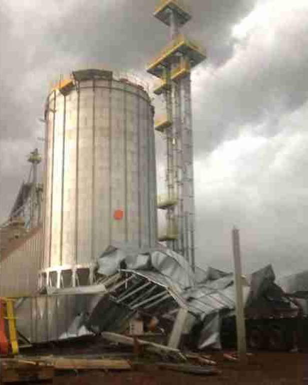 O silo pertence a uma cooperativa e estava em fase de construção quando parte da estrutura foi derrubada pela ventania. O complexo integra um projeto de ampliação da capacidade de armazenamento na Área Industrial Santa Inês.