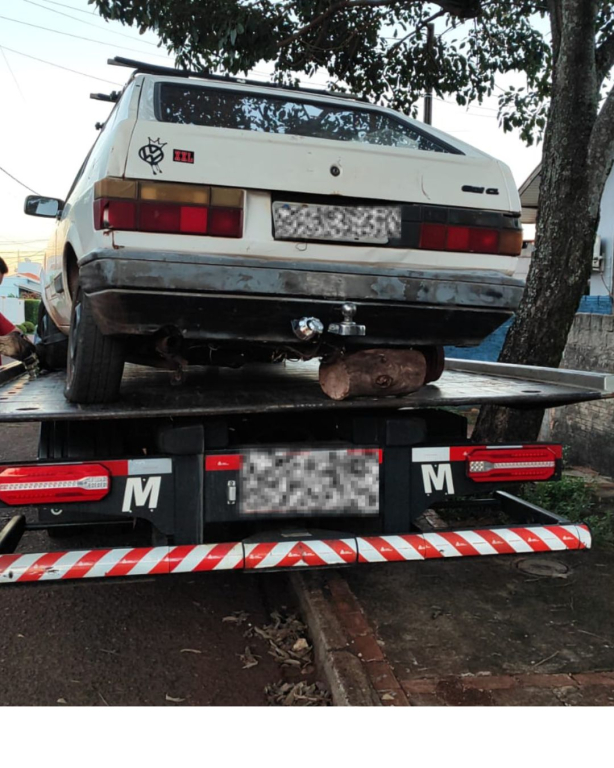 Na sequência, com apoio da equipe K9, os agentes foram até um endereço na região central, onde localizaram um Volkswagen Gol em estado precário. O veículo estava sem bateria, sem uma das rodas traseiras, sem o banco do passageiro e com irregularidades nas placas, sendo que uma delas correspondia ao Siena abordado.