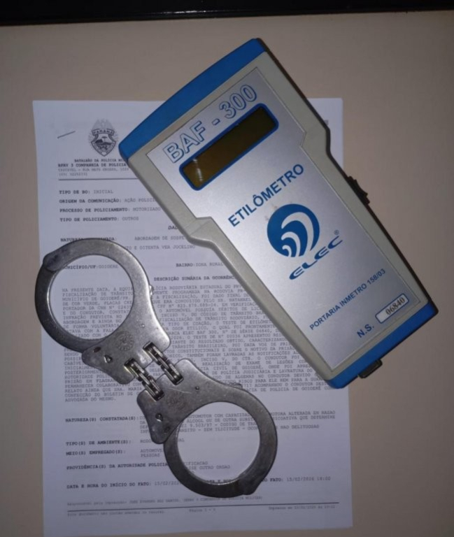 Segundo informações da Polícia Militar, o condutor de um GM/Astra, habilitado na categoria B, apresentava diversos sinais de embriaguez, como odor etílico acentuado, olhos avermelhados, sudorese e comportamento disperso. Ao ser questionado, ele relatou que havia participado de um jantar onde consumiu bebida alcoólica.