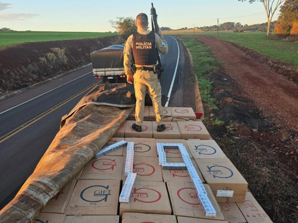 Uma grande apreensão de cigarros contrabandeados foi realizada pela Polícia Militar no início da manhã desta segunda-feira (19), em Mercedes, no oeste do Paraná. Um caminhão carregado com 15 mil pacotes — o equivalente a 300 caixas — de cigarros de origem paraguaia foi interceptado na BR-163, na saída para Guaíra.