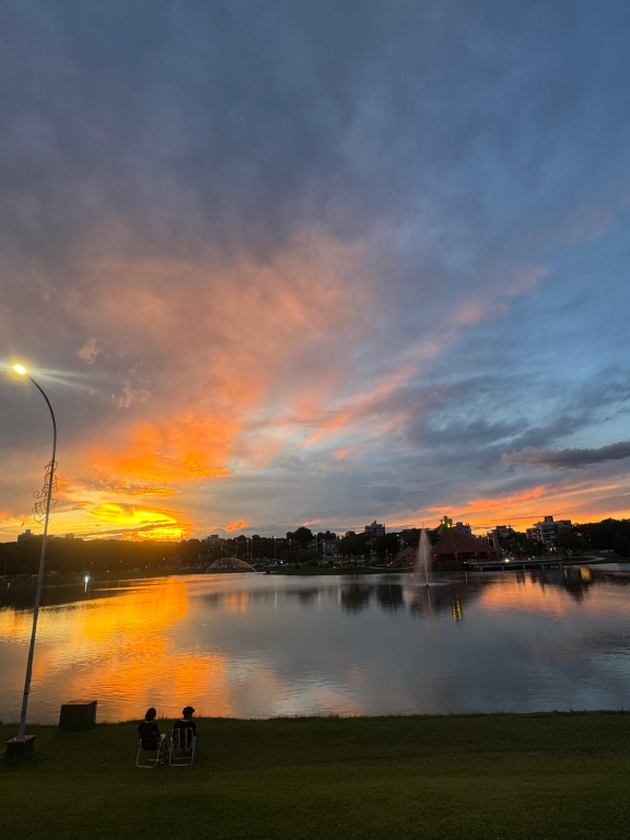 Para quinta-feira (19), o sol aparece entre nuvens, mas ainda há possibilidade de pancadas rápidas de chuva e trovoadas ao longo do dia, com máxima de 29°C.